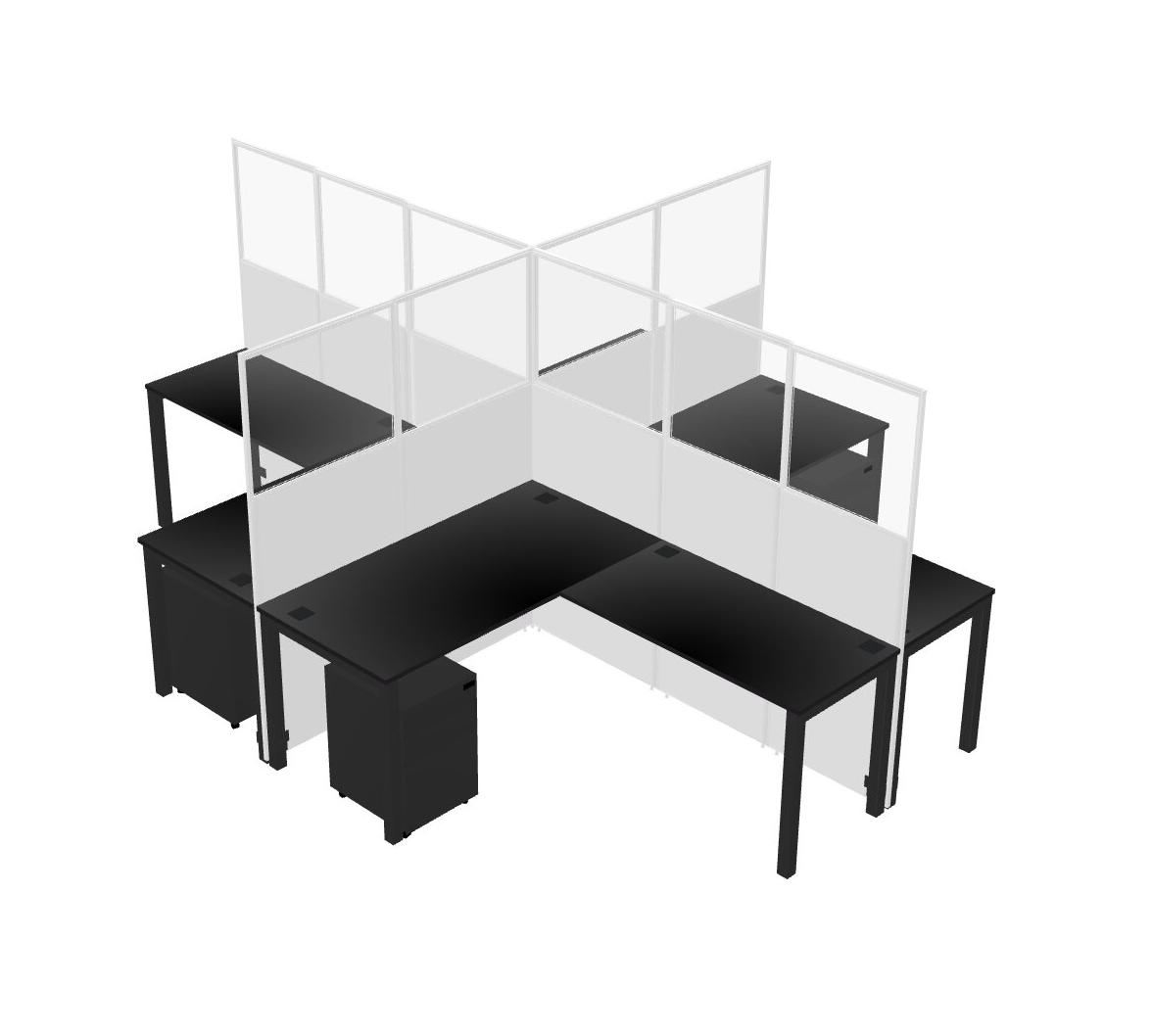 Black L-shaped Quad Office Cubicles Mobile Drawers