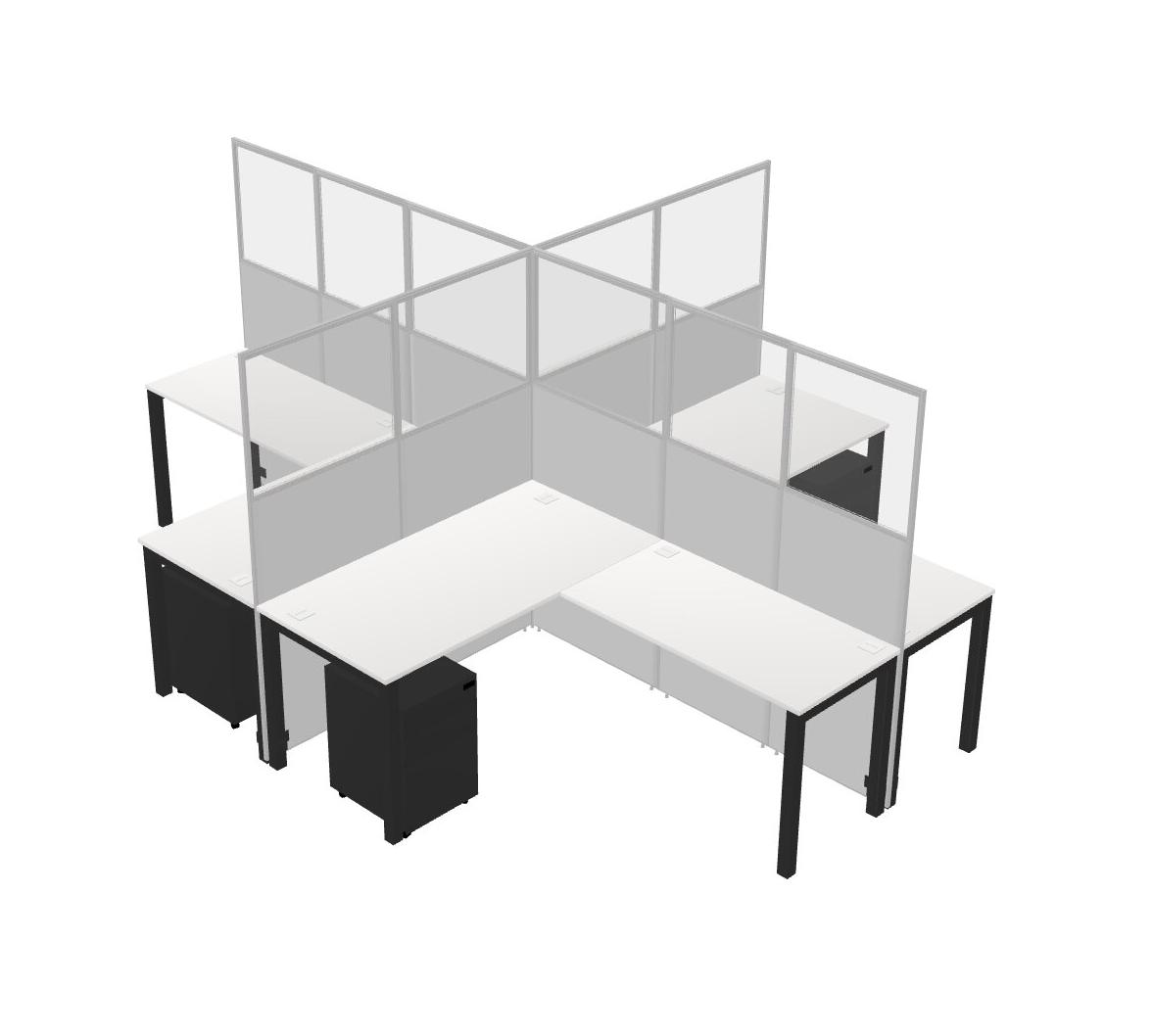 White L-shaped Quad Office Cubicles Mobile Drawers