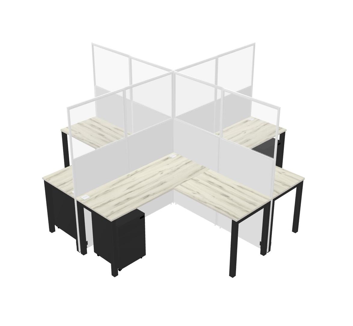 Heinne Holz L-shaped Quad Office Cubicles Mobile Drawers