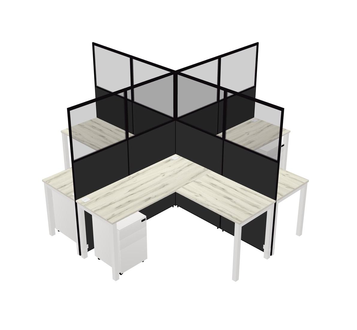 Heinne Holz L-shaped Quad Office Cubicles Mobile Drawers