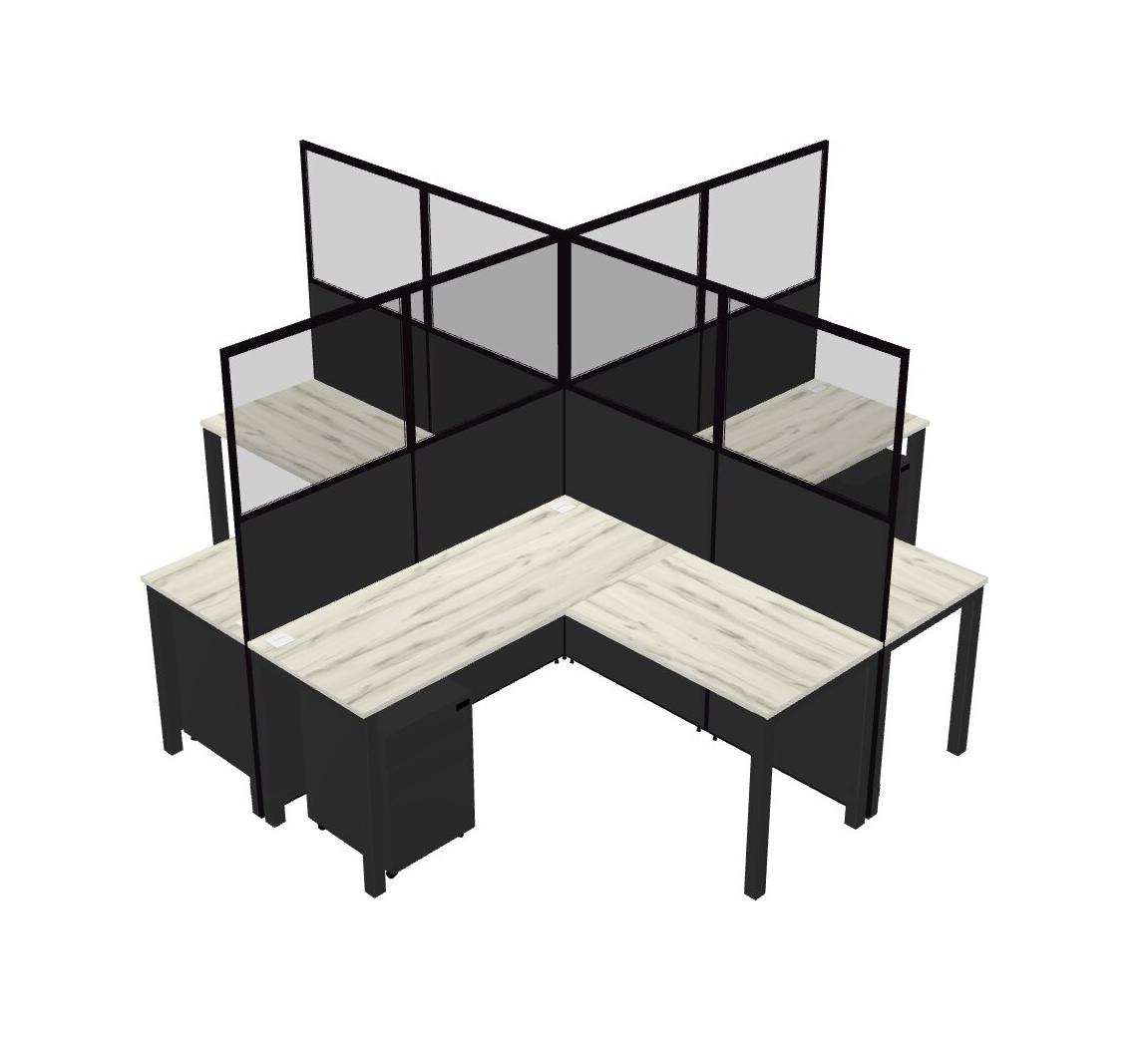 Heinne Holz L-shaped Quad Office Cubicles Mobile Drawers