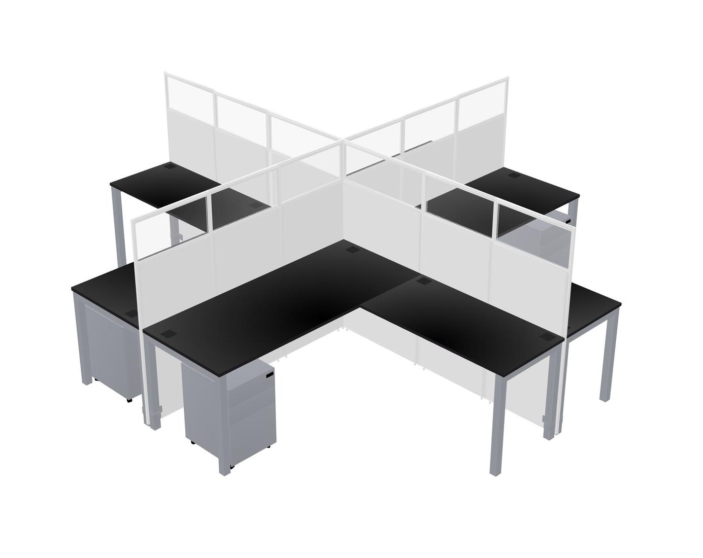 Black L-shaped Quad Office Cubicles Mobile Drawers