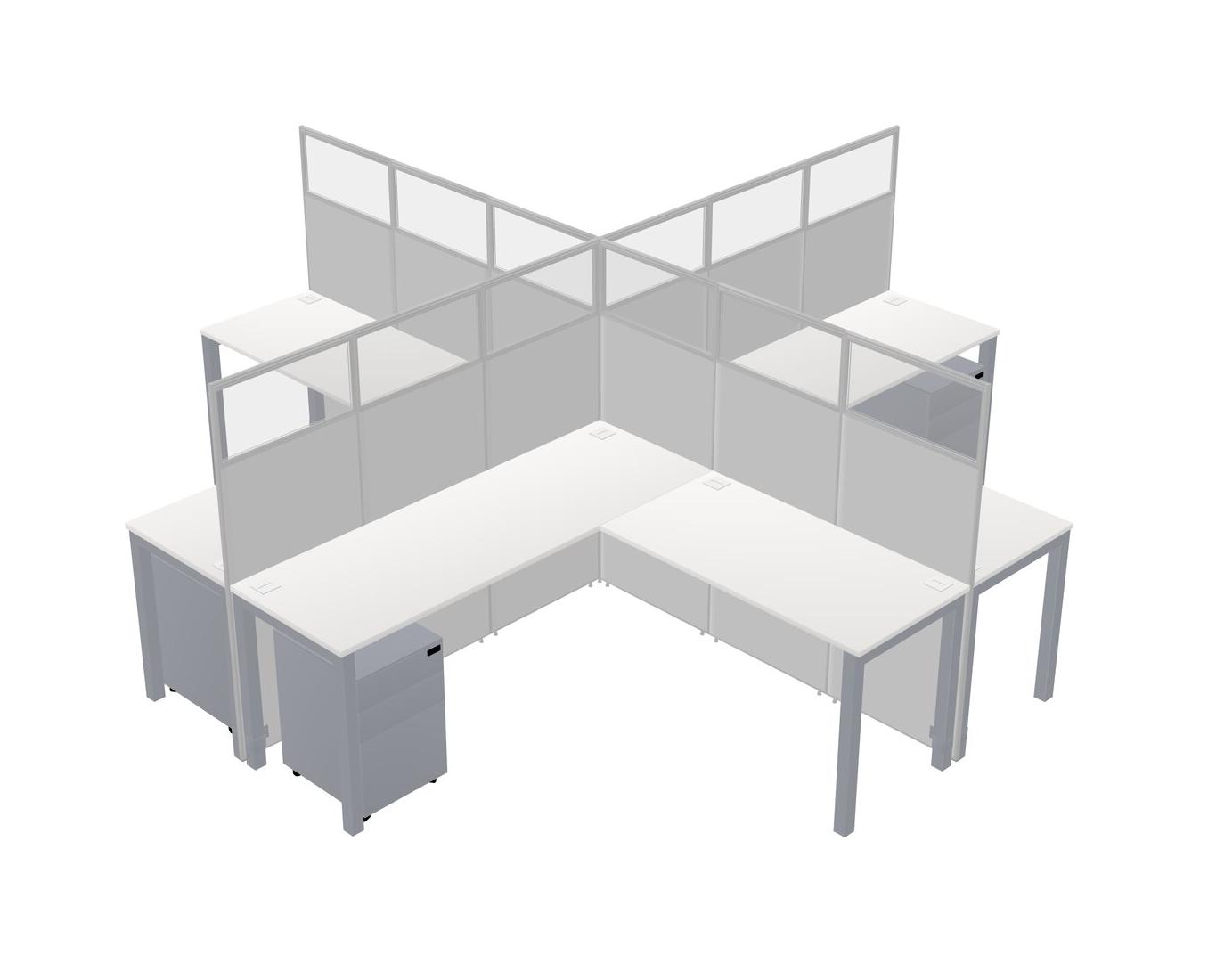 White L-shaped Quad Office Cubicles Mobile Drawers