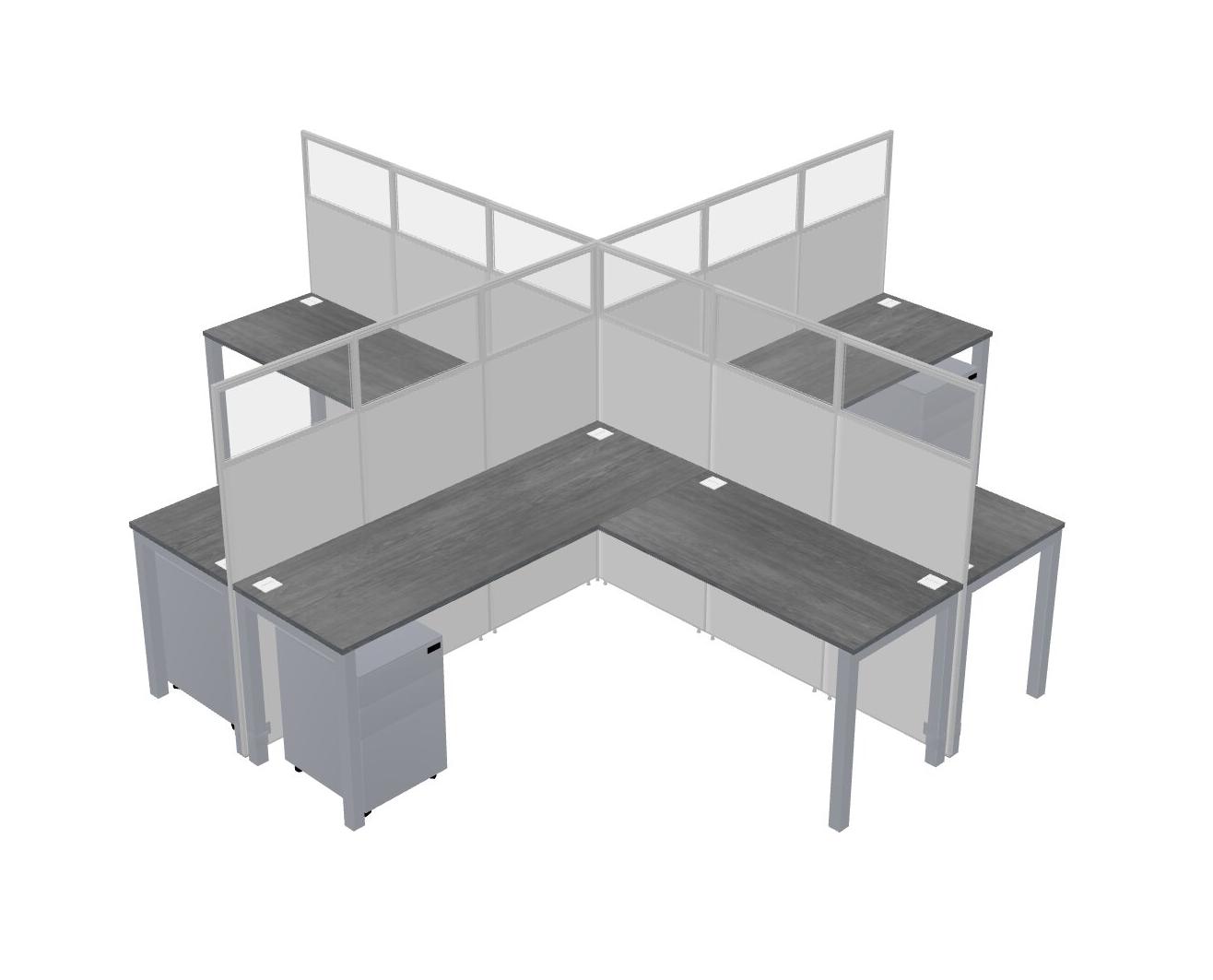 Grey L-shaped Quad Office Cubicles Mobile Drawers