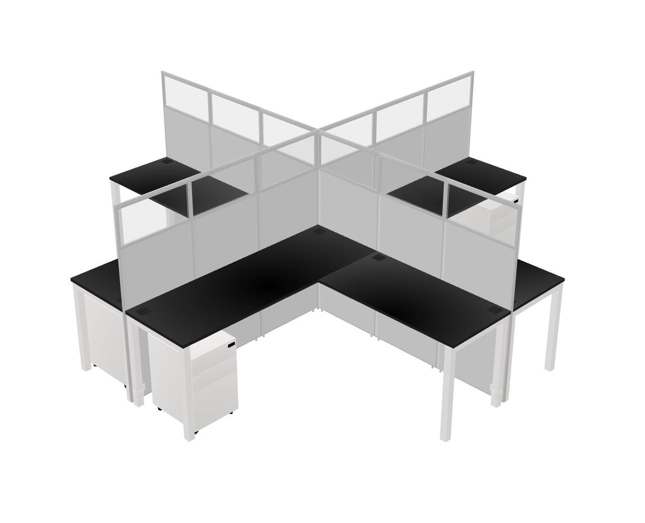 Black L-shaped Quad Office Cubicles Mobile Drawers