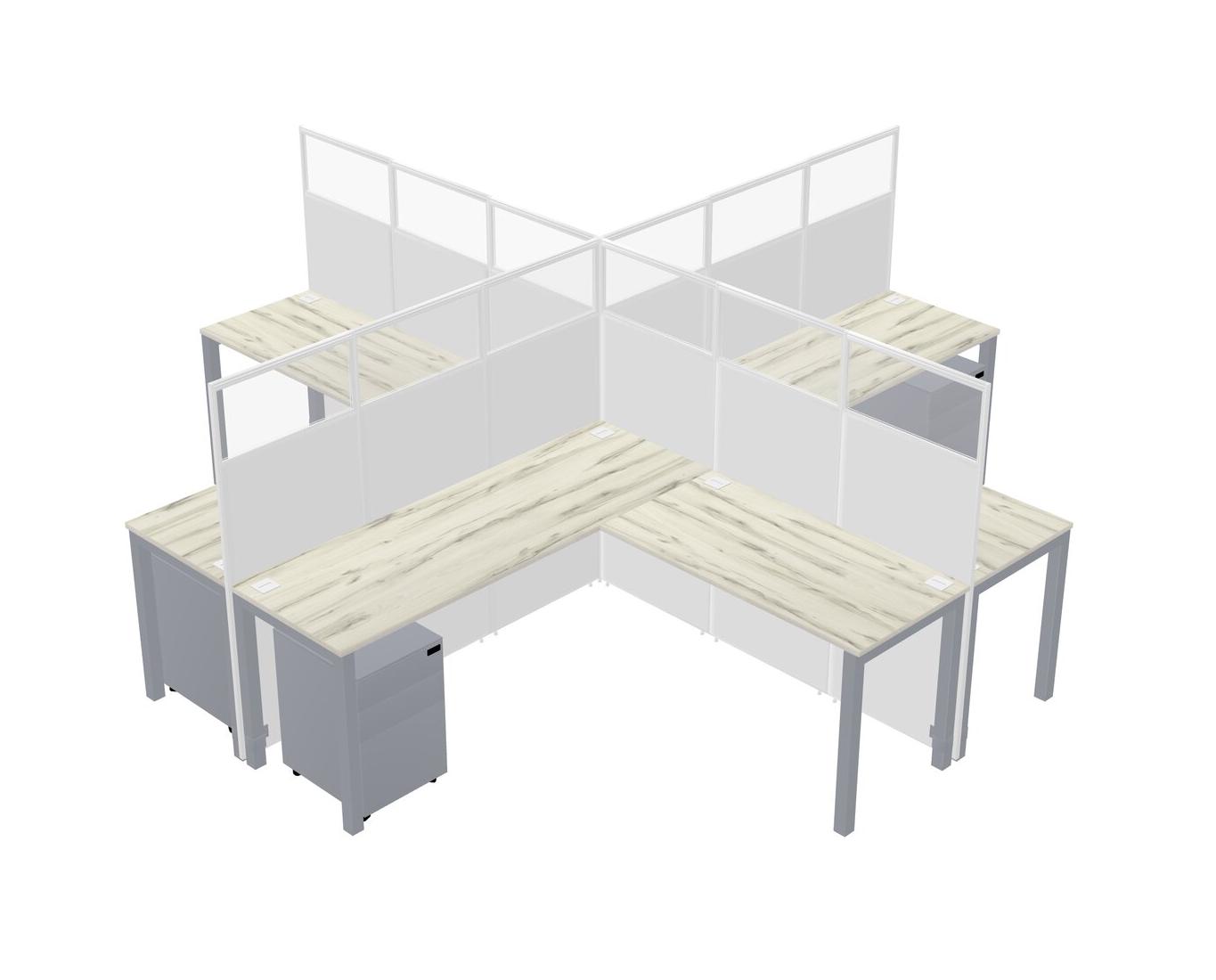 Heinne Holz L-shaped Quad Office Cubicles Mobile Drawers
