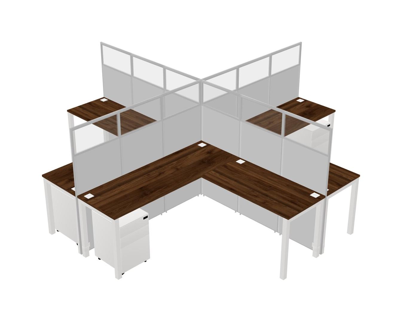 Columbia Walnut L-shaped Quad Office Cubicles Mobile Drawers
