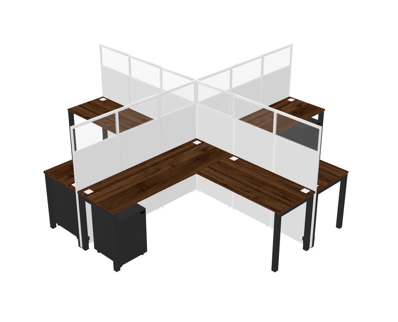 Columbia Walnut L-shaped Quad Office Cubicles Mobile Drawers