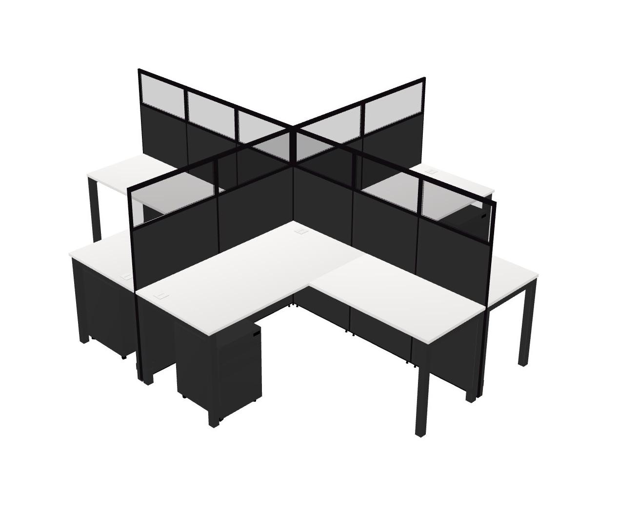 White L-shaped Quad Office Cubicles Mobile Drawers