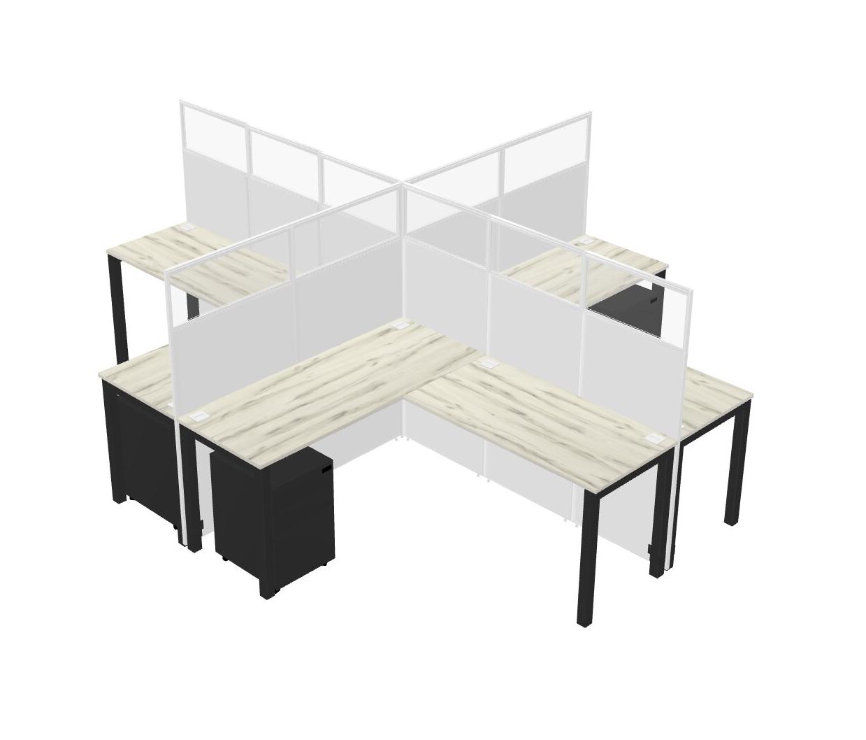 Heinne Holz L-shaped Quad Office Cubicles Mobile Drawers
