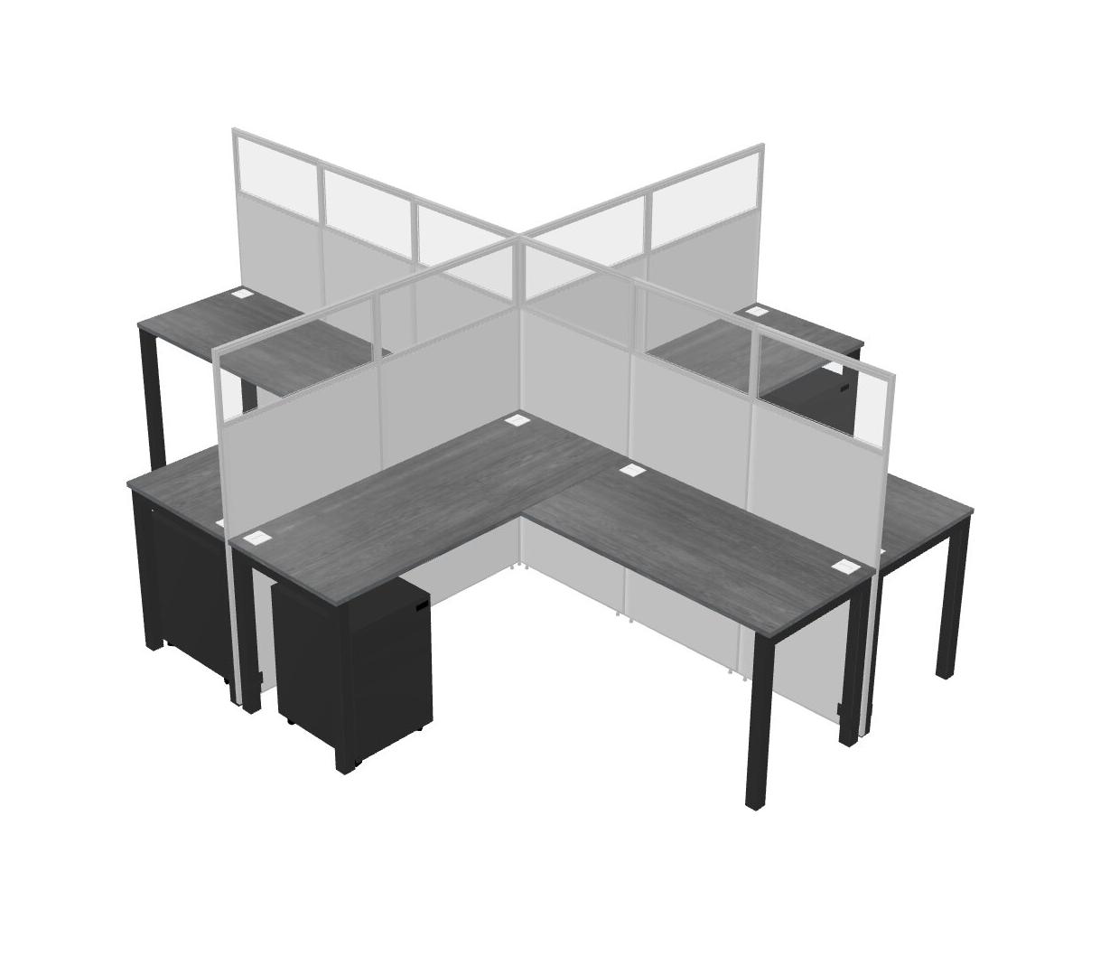 Grey L-shaped Quad Office Cubicles Mobile Drawers