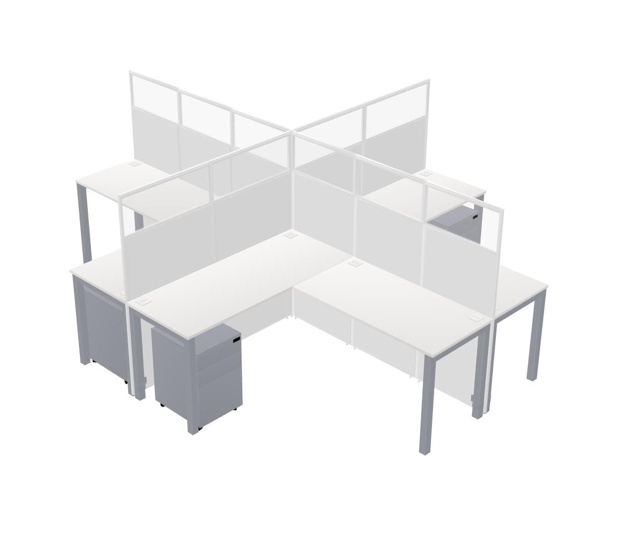White L-shaped Quad Office Cubicles Mobile Drawers