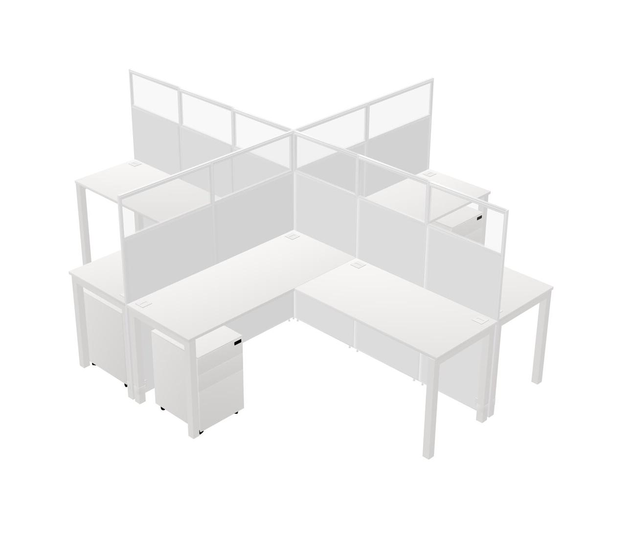 White L-shaped Quad Office Cubicles Mobile Drawers