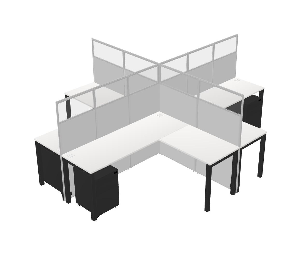 White L-shaped Quad Office Cubicles Mobile Drawers