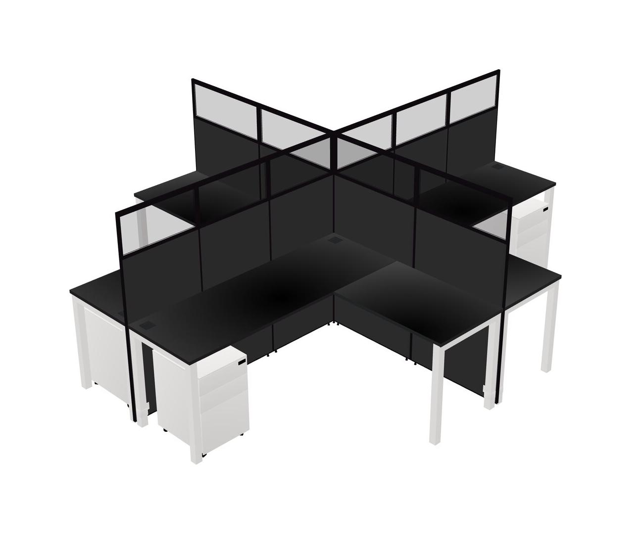 Black L-shaped Quad Office Cubicles Mobile Drawers