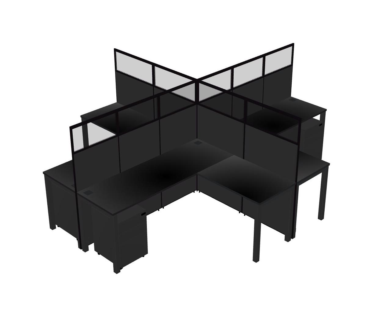 Black L-shaped Quad Office Cubicles Mobile Drawers