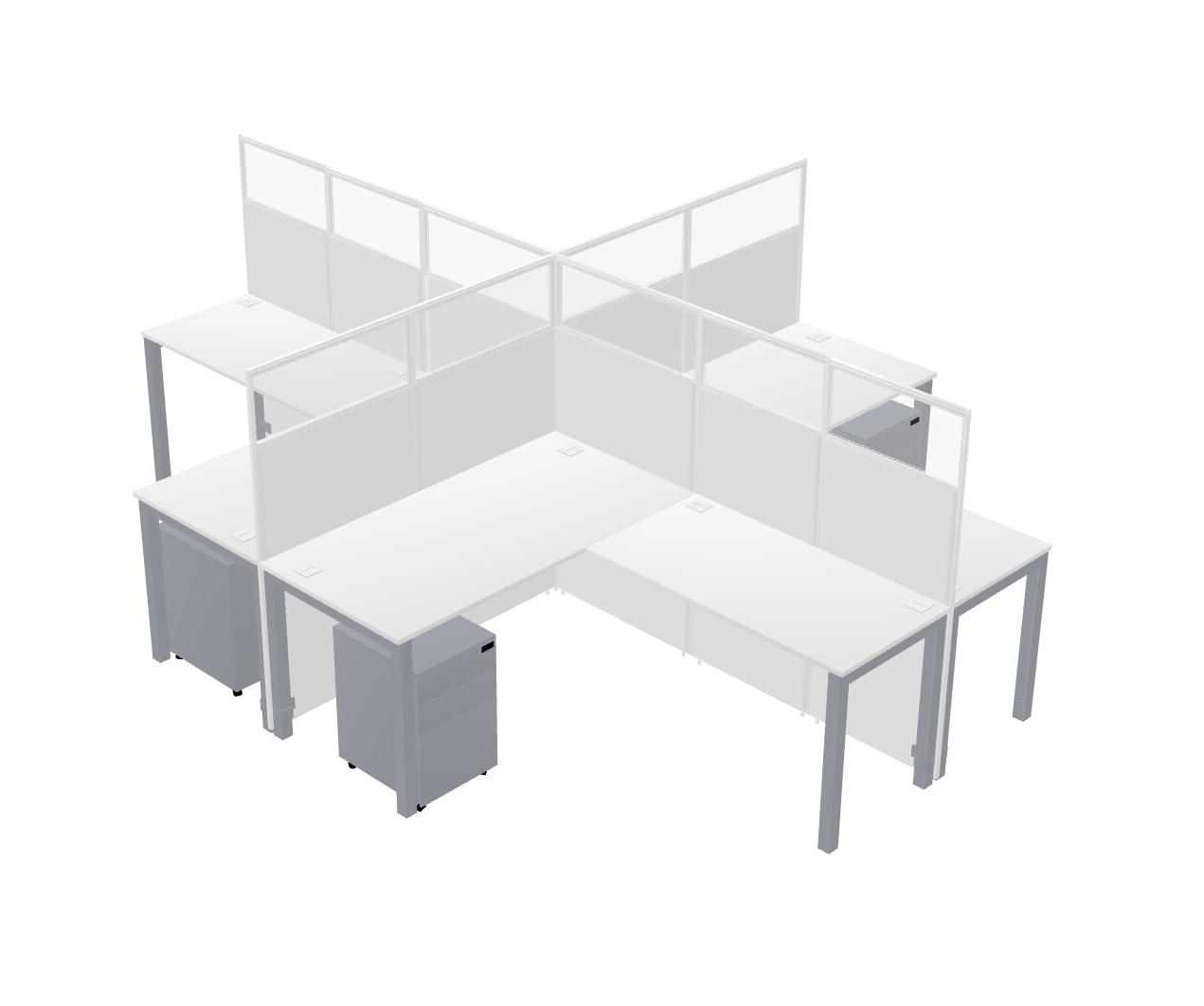 White L-shaped Quad Office Cubicles Mobile Drawers