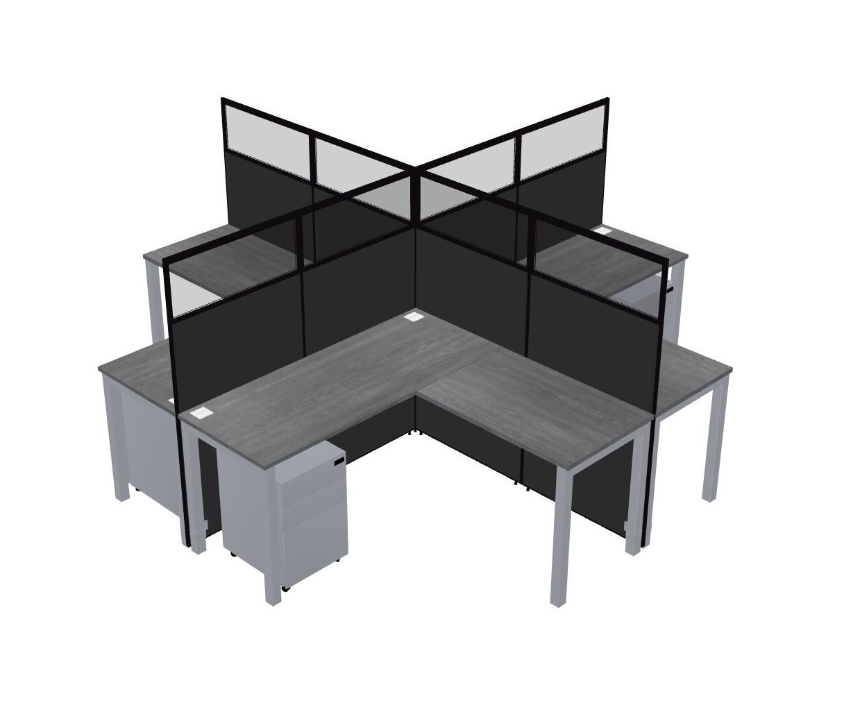 Grey L-shaped Quad Office Cubicles Mobile Drawers