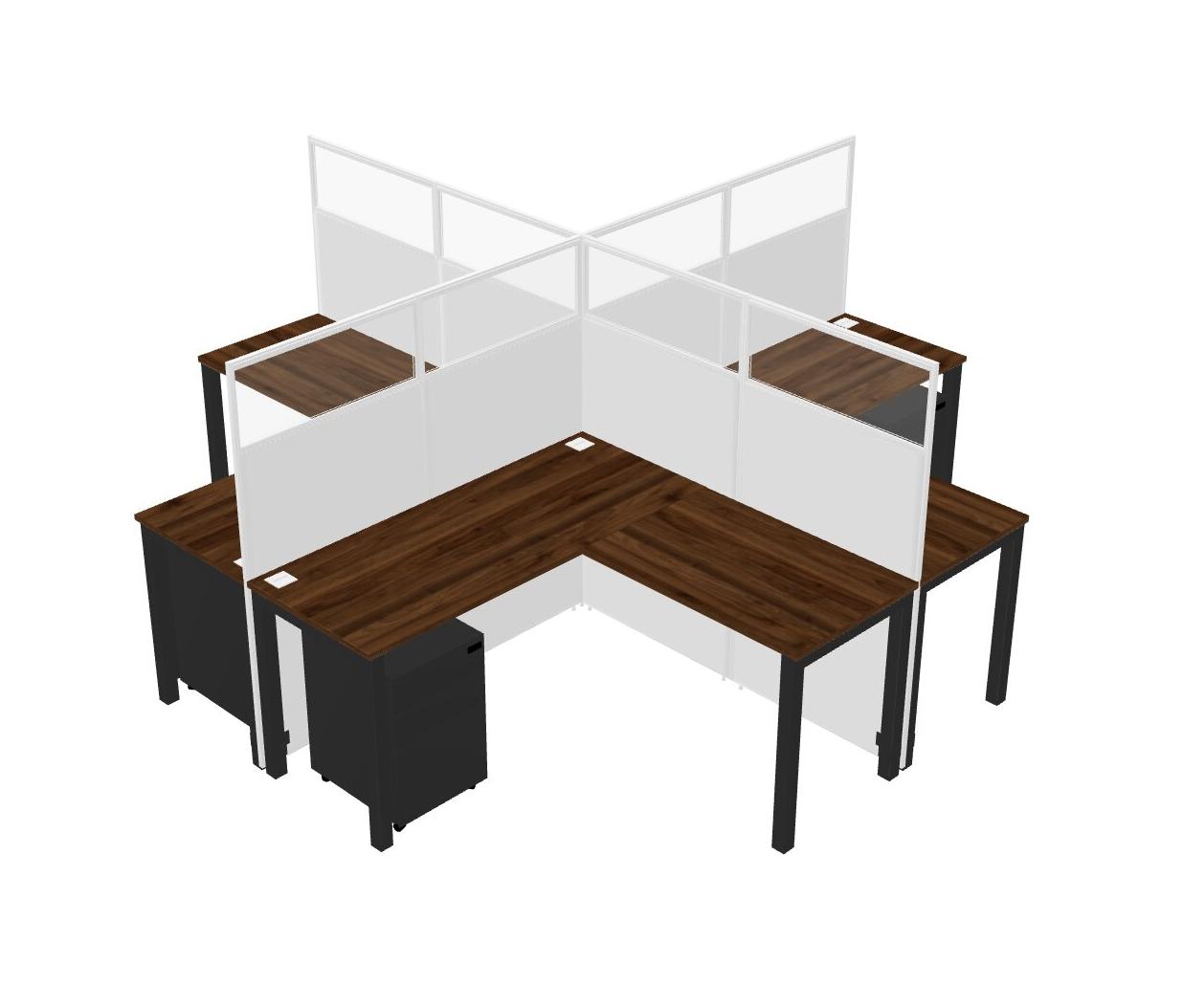 Columbia Walnut L-shaped Quad Office Cubicles Mobile Drawers