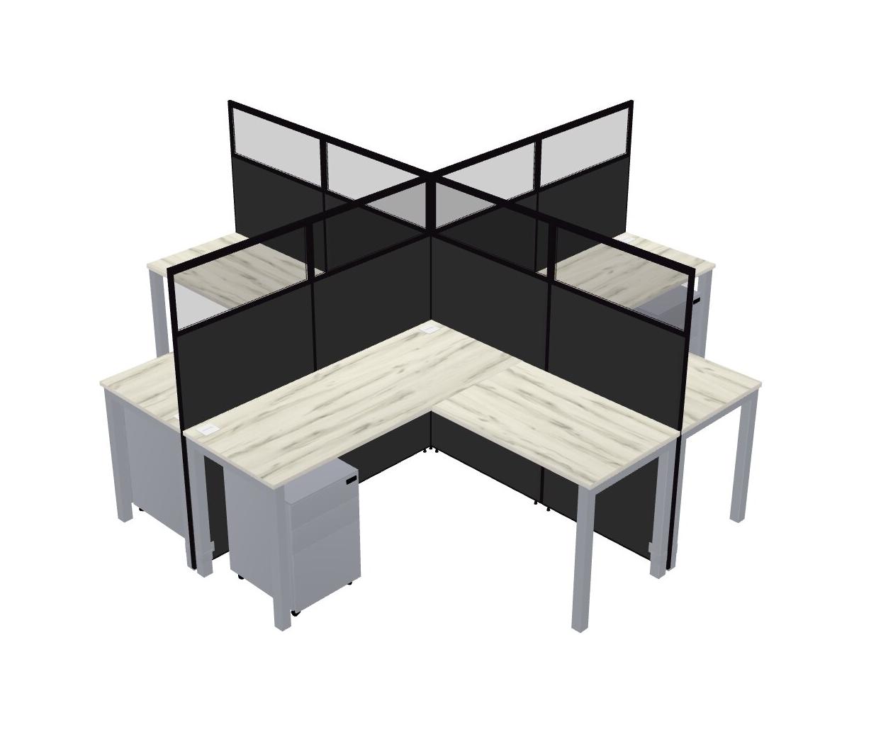 Heinne Holz L-shaped Quad Office Cubicles Mobile Drawers