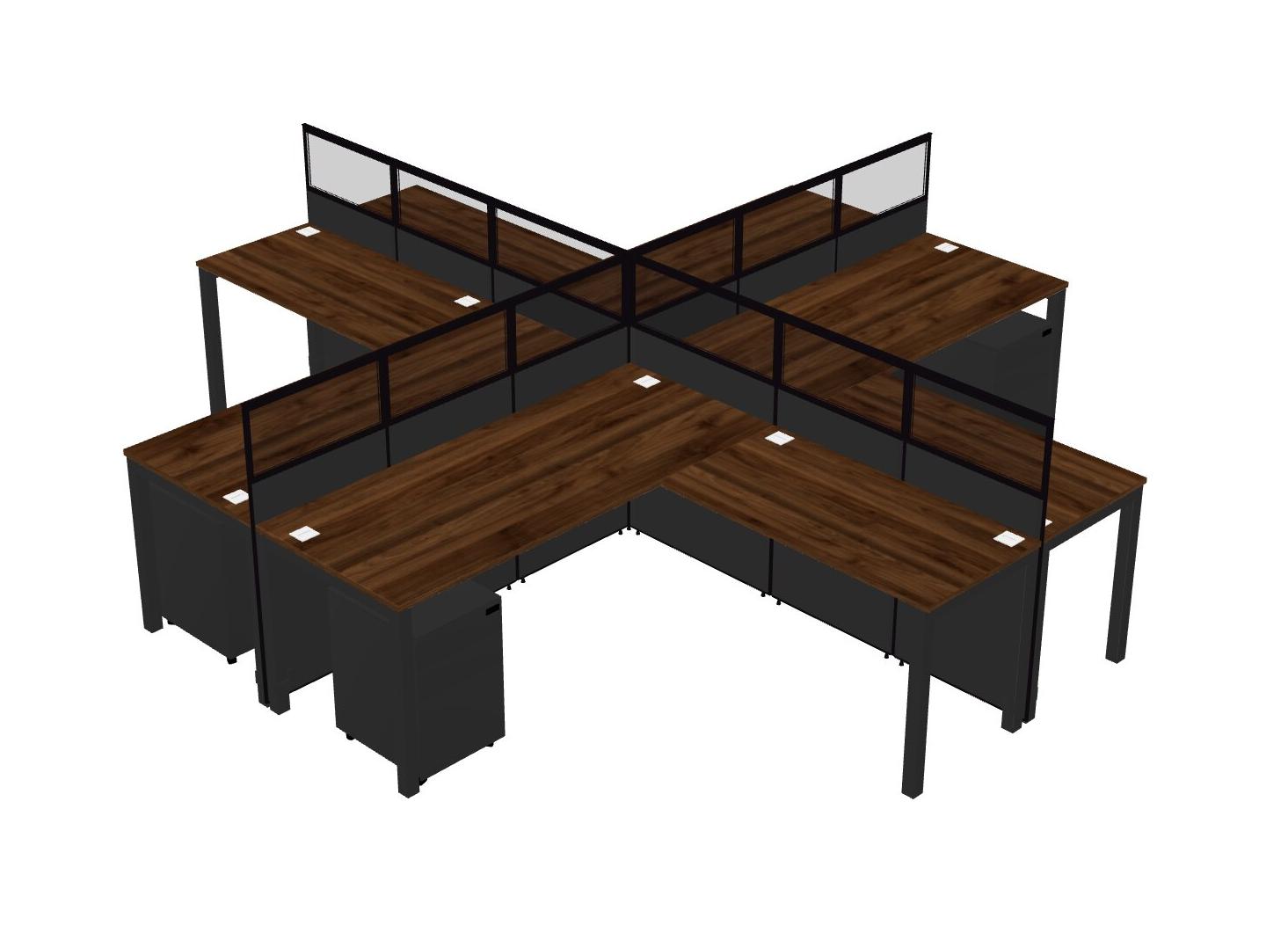 Columbia Walnut L-shaped Quad Office Cubicles Mobile Drawers