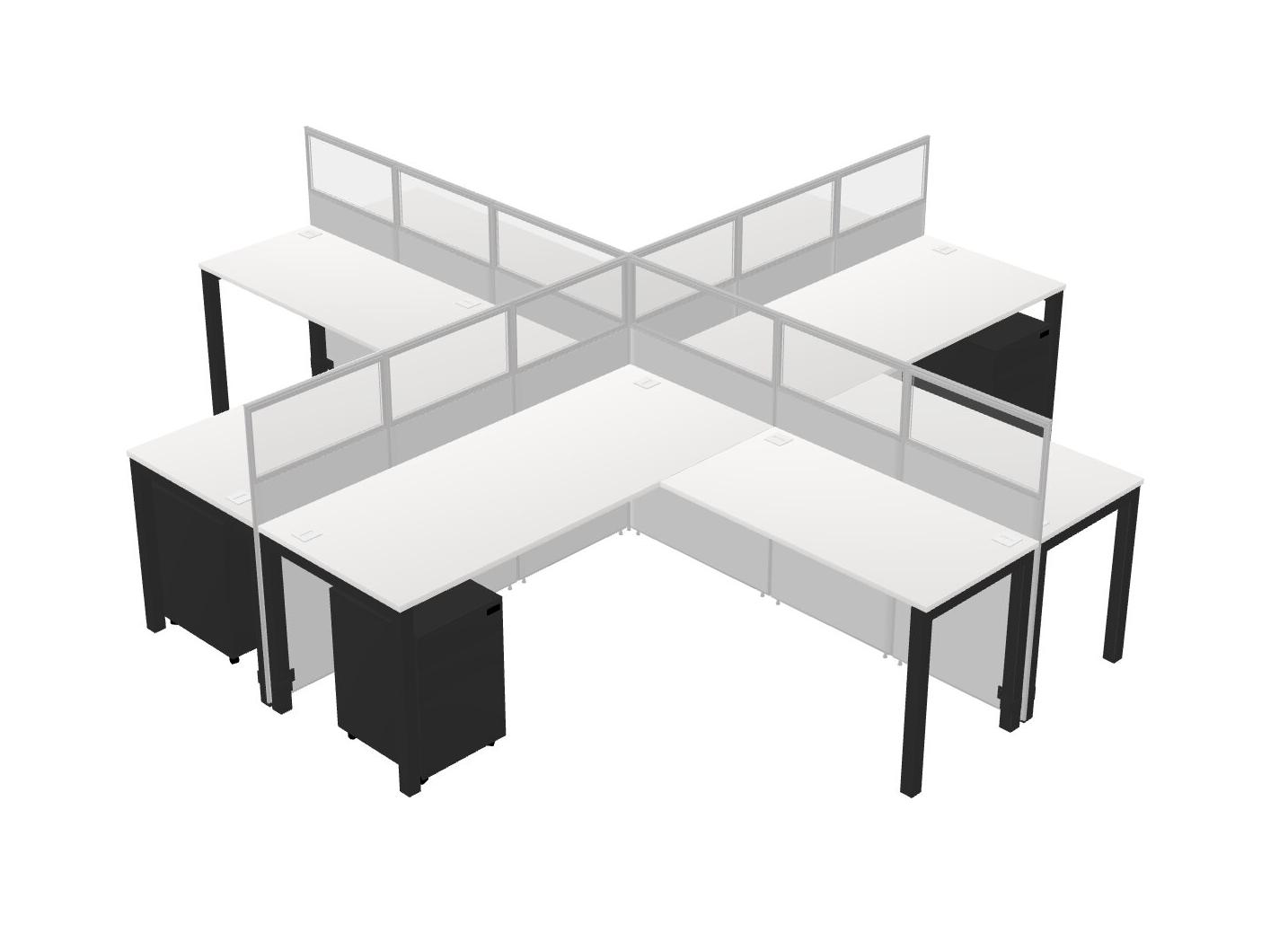 White L-shaped Quad Office Cubicles Mobile Drawers