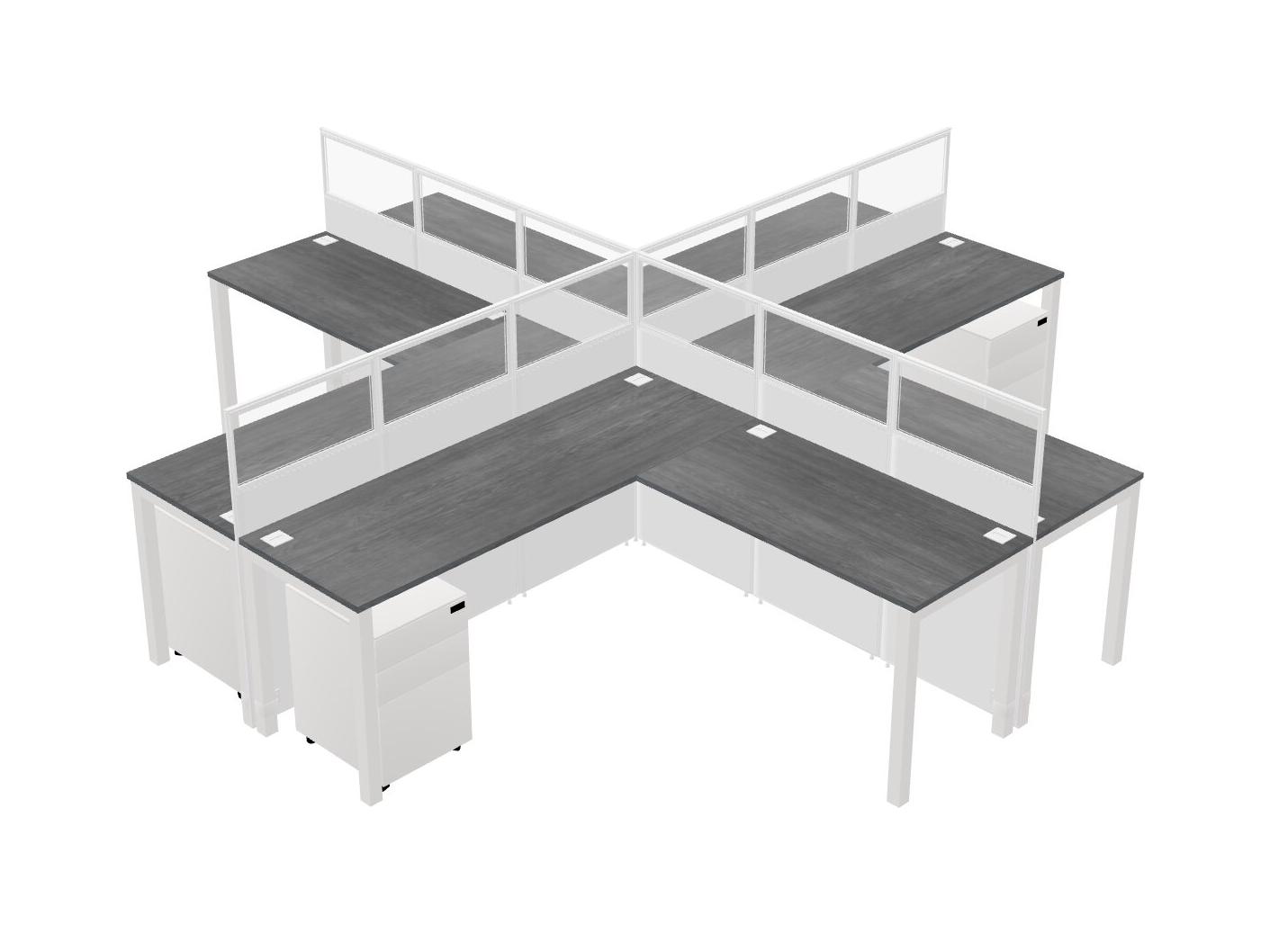 Grey L-shaped Quad Office Cubicles Mobile Drawers