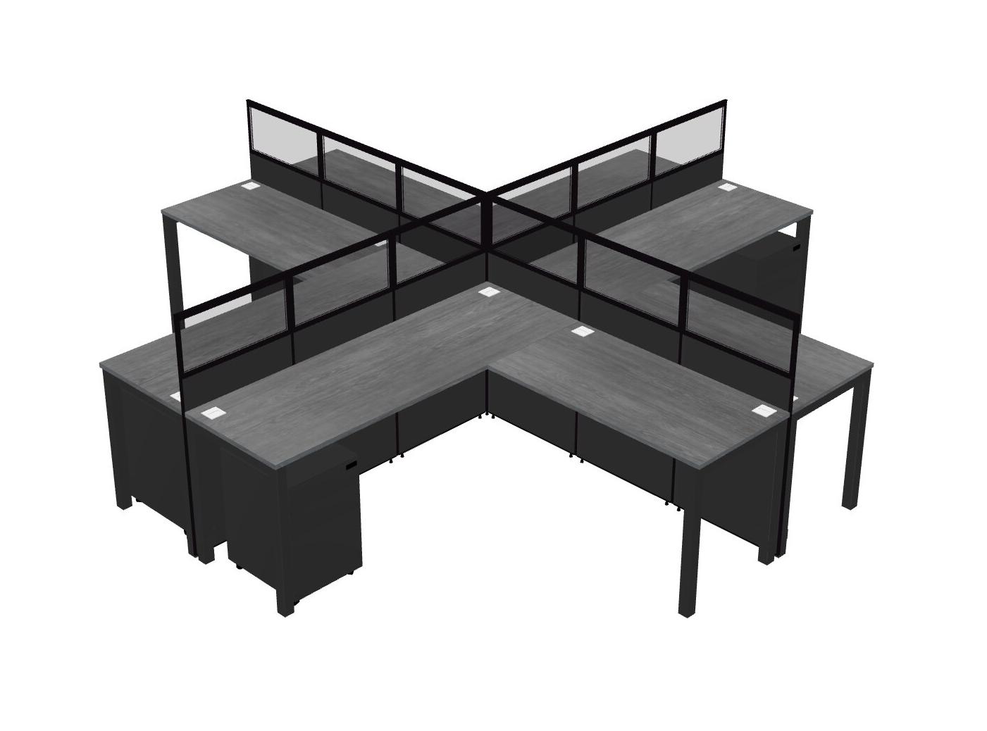 Grey L-shaped Quad Office Cubicles Mobile Drawers