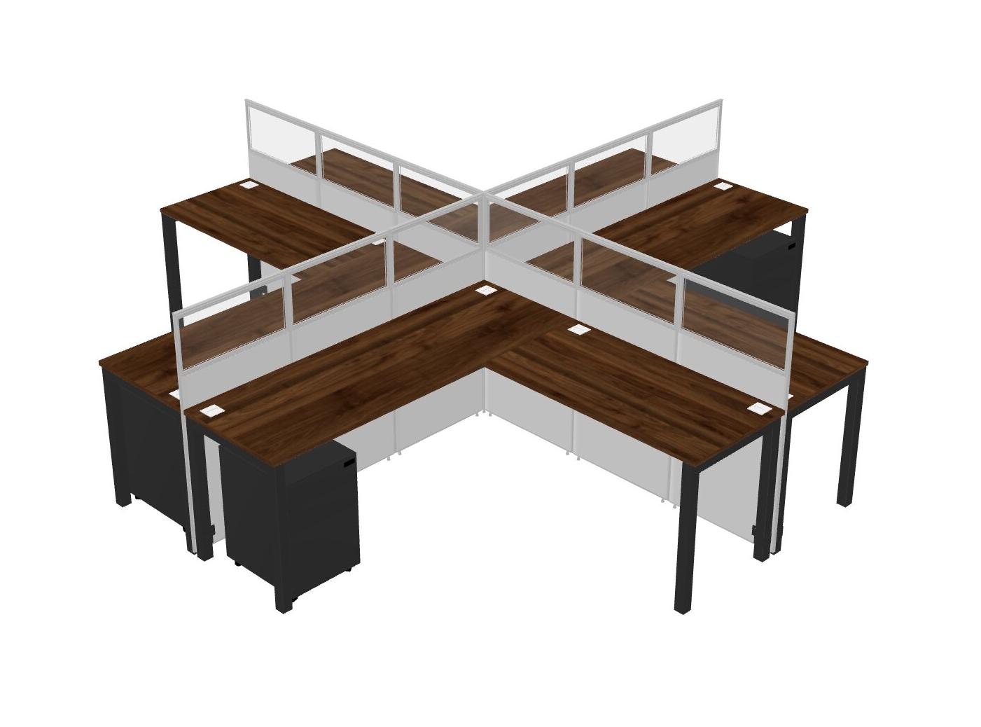 Columbia Walnut L-shaped Quad Office Cubicles Mobile Drawers