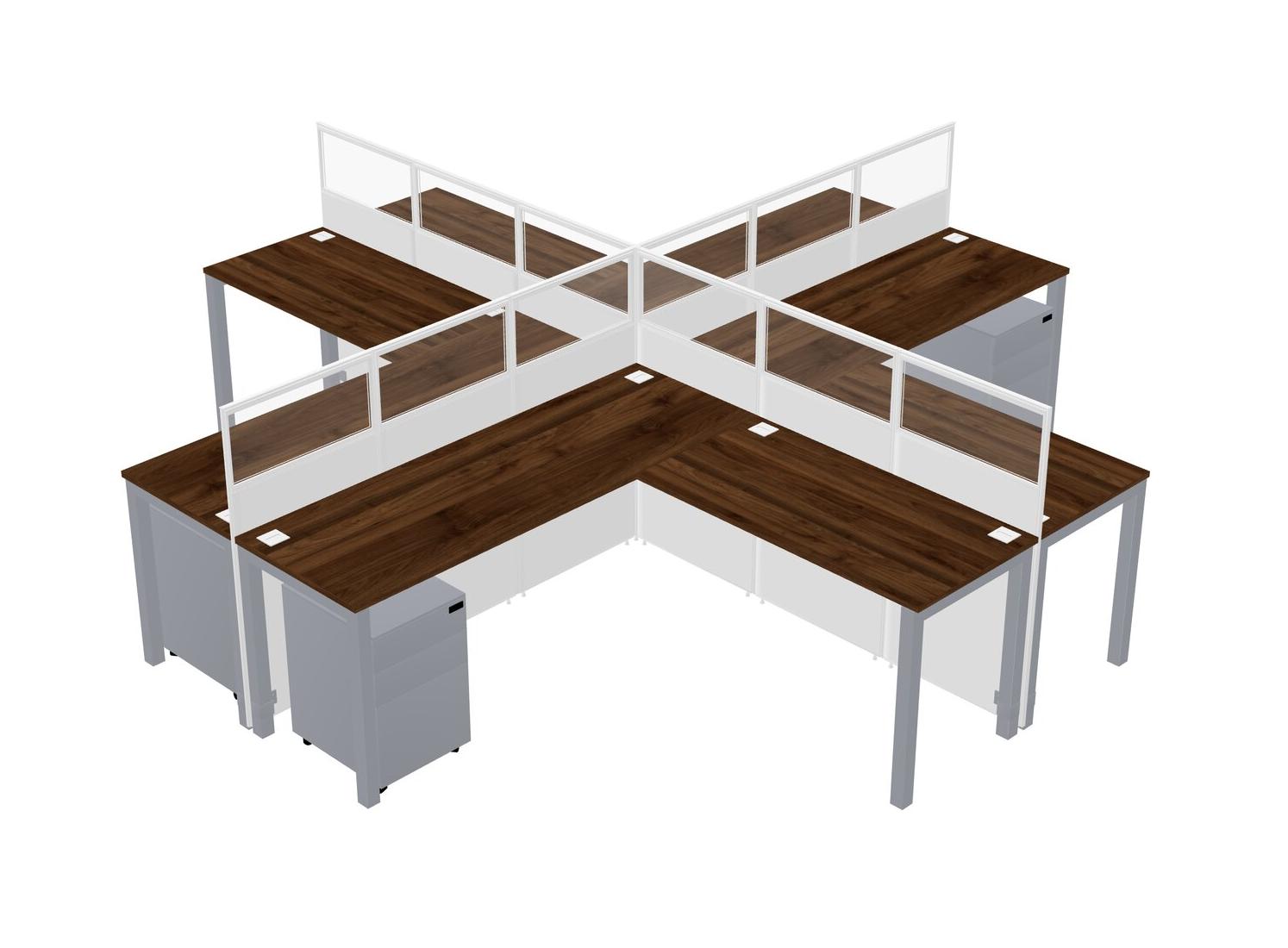 Columbia Walnut L-shaped Quad Office Cubicles Mobile Drawers