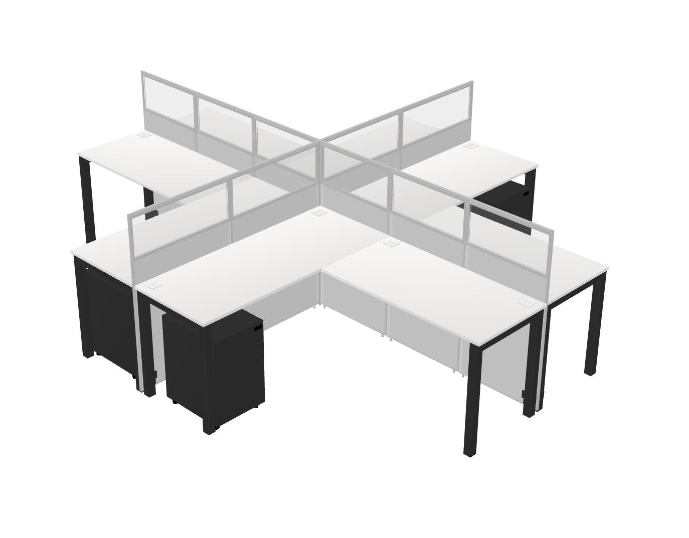 White L-shaped Quad Office Cubicles Mobile Drawers