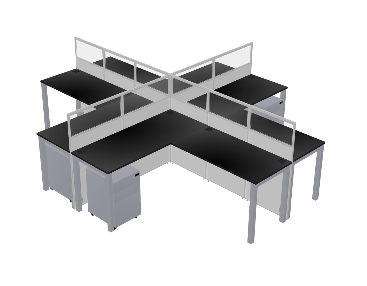 Black L-shaped Quad Office Cubicles Mobile Drawers