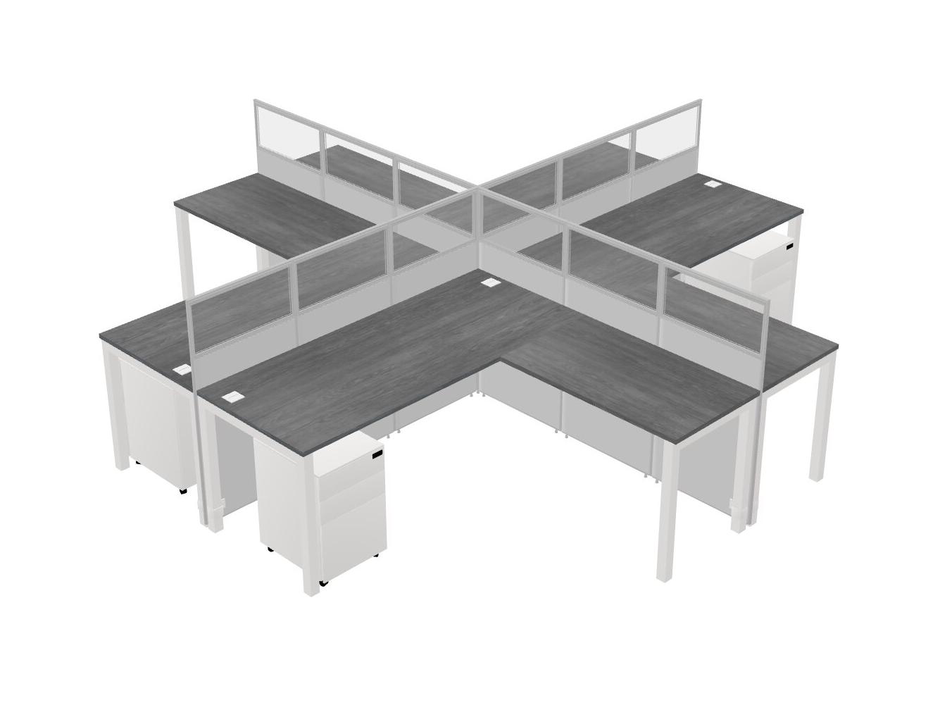 Grey L-shaped Quad Office Cubicles Mobile Drawers