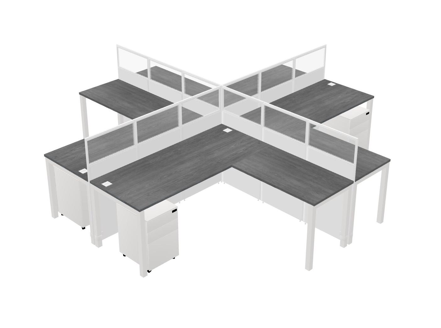 Grey L-shaped Quad Office Cubicles Mobile Drawers