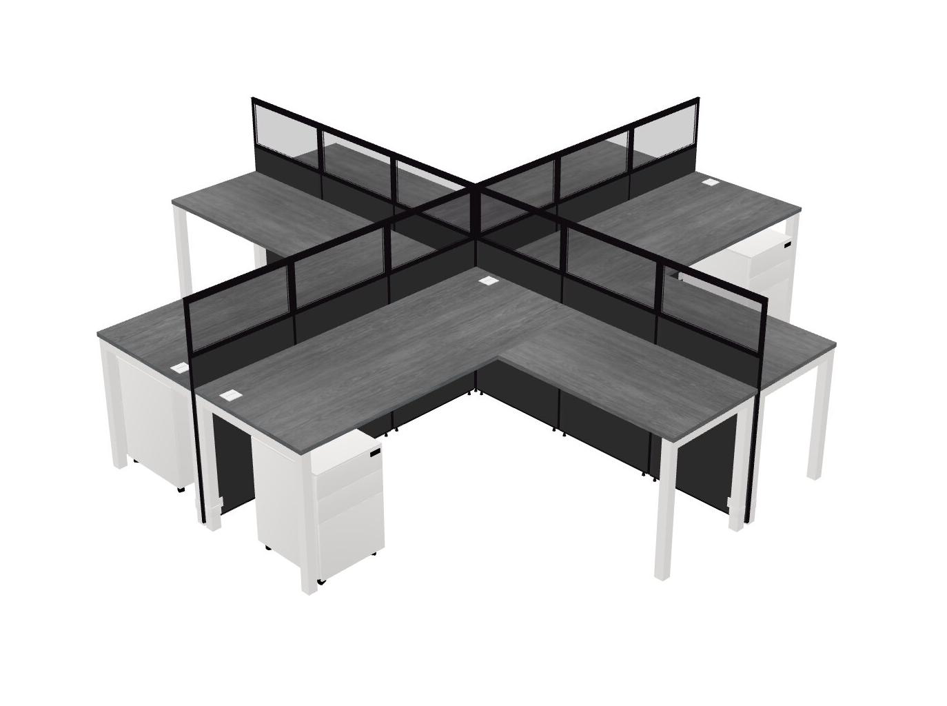 Grey L-shaped Quad Office Cubicles Mobile Drawers