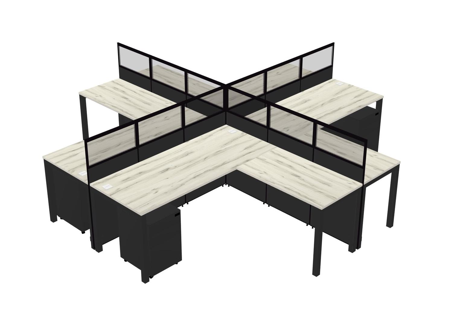 Heinne Holz L-shaped Quad Office Cubicles Mobile Drawers