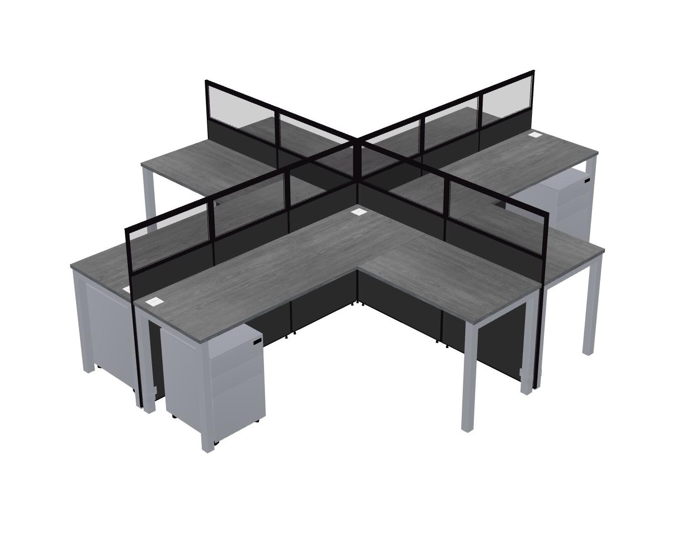 Grey L-shaped Quad Office Cubicles Mobile Drawers