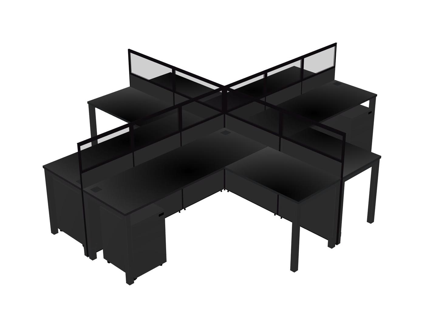 Black L-shaped Quad Office Cubicles Mobile Drawers