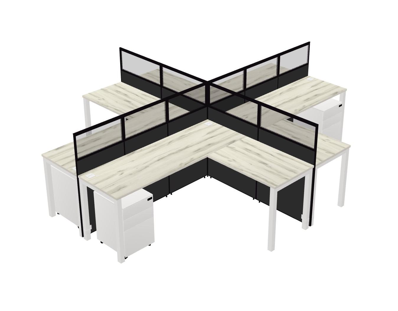 Heinne Holz L-shaped Quad Office Cubicles Mobile Drawers