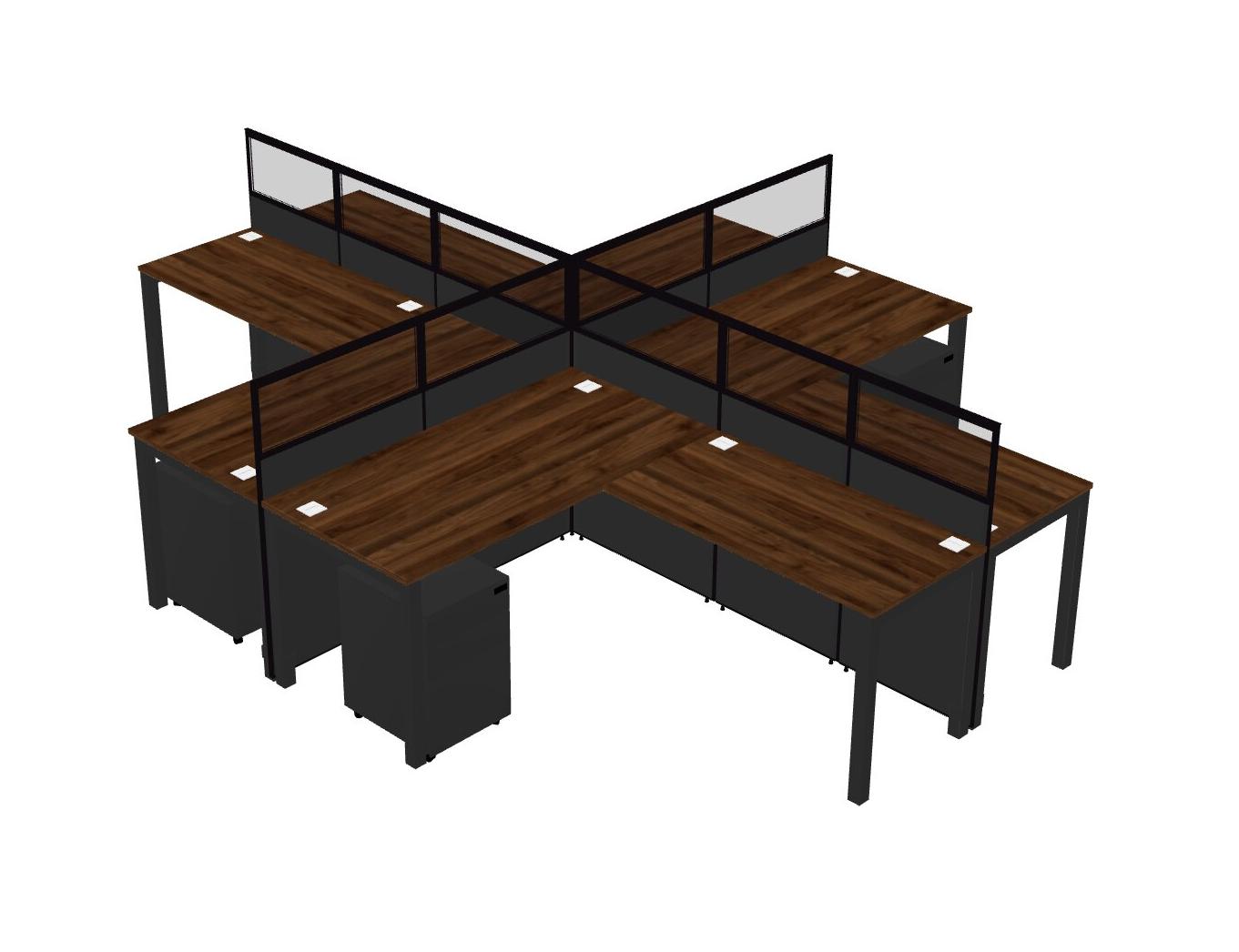 Columbia Walnut L-shaped Quad Office Cubicles Mobile Drawers