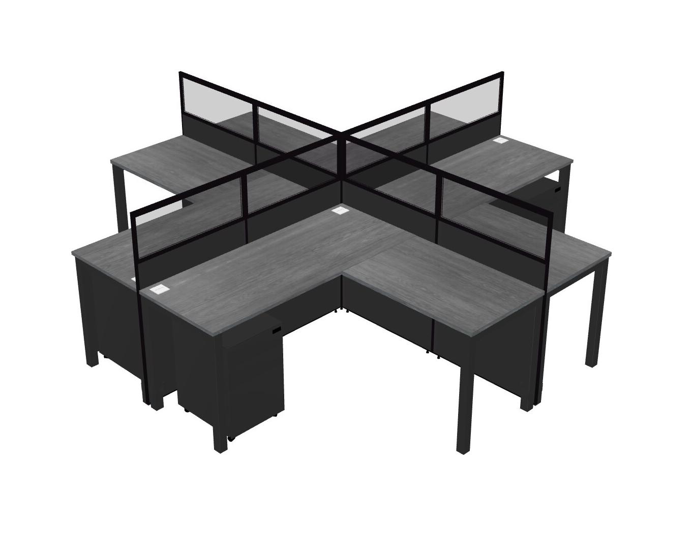 Grey L-shaped Quad Office Cubicles Mobile Drawers