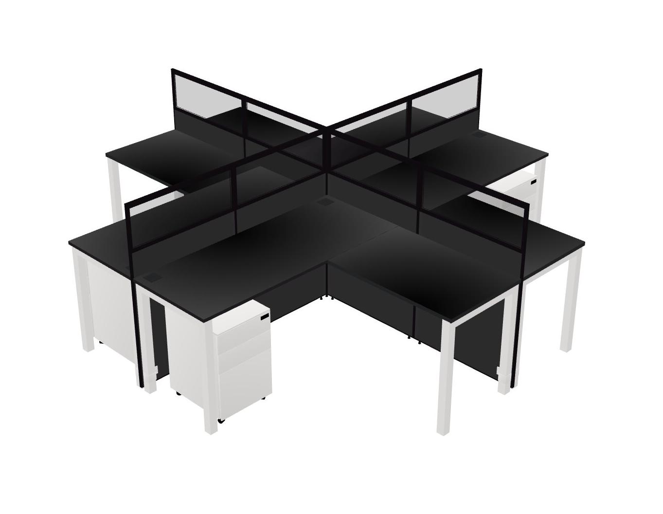Black L-shaped Quad Office Cubicles Mobile Drawers