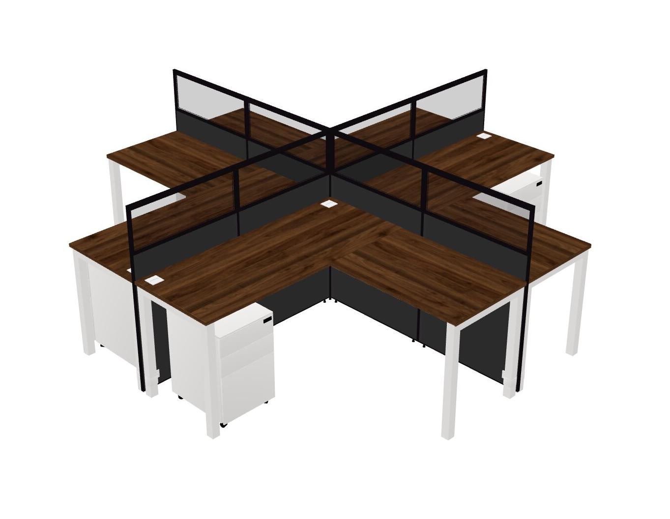 Columbia Walnut L-shaped Quad Office Cubicles Mobile Drawers