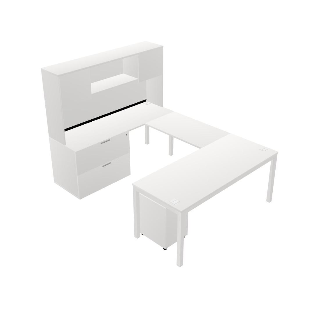 White U-shaped Office Desk With File Cabinet + Mobile Drawers + Hutch