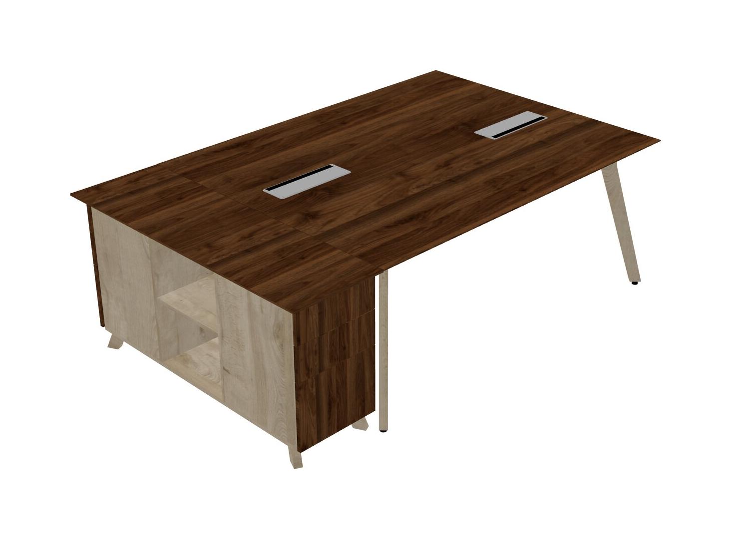 Columbia Walnut Modern Rectangular Shared Office Desk + Storage Cabinet