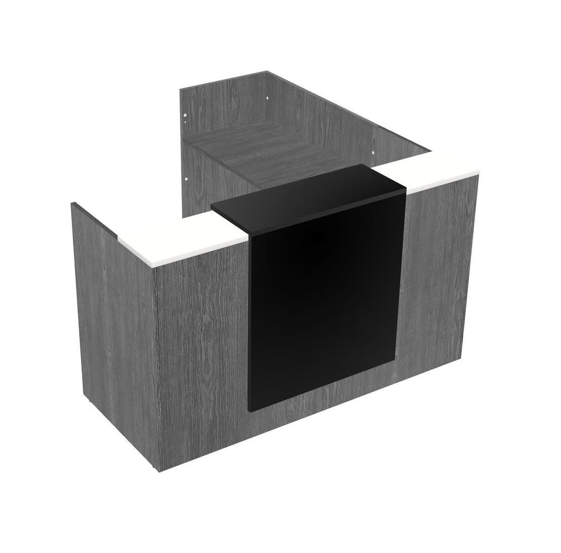 White Modular Reception Desk With Reception Return With Floating Counter And Wooden Mobile Drawers