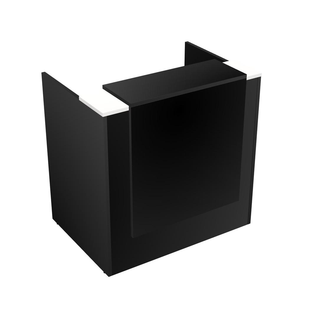 White Modular Reception Desk With Floating Counter And Wooden Mobile Drawers