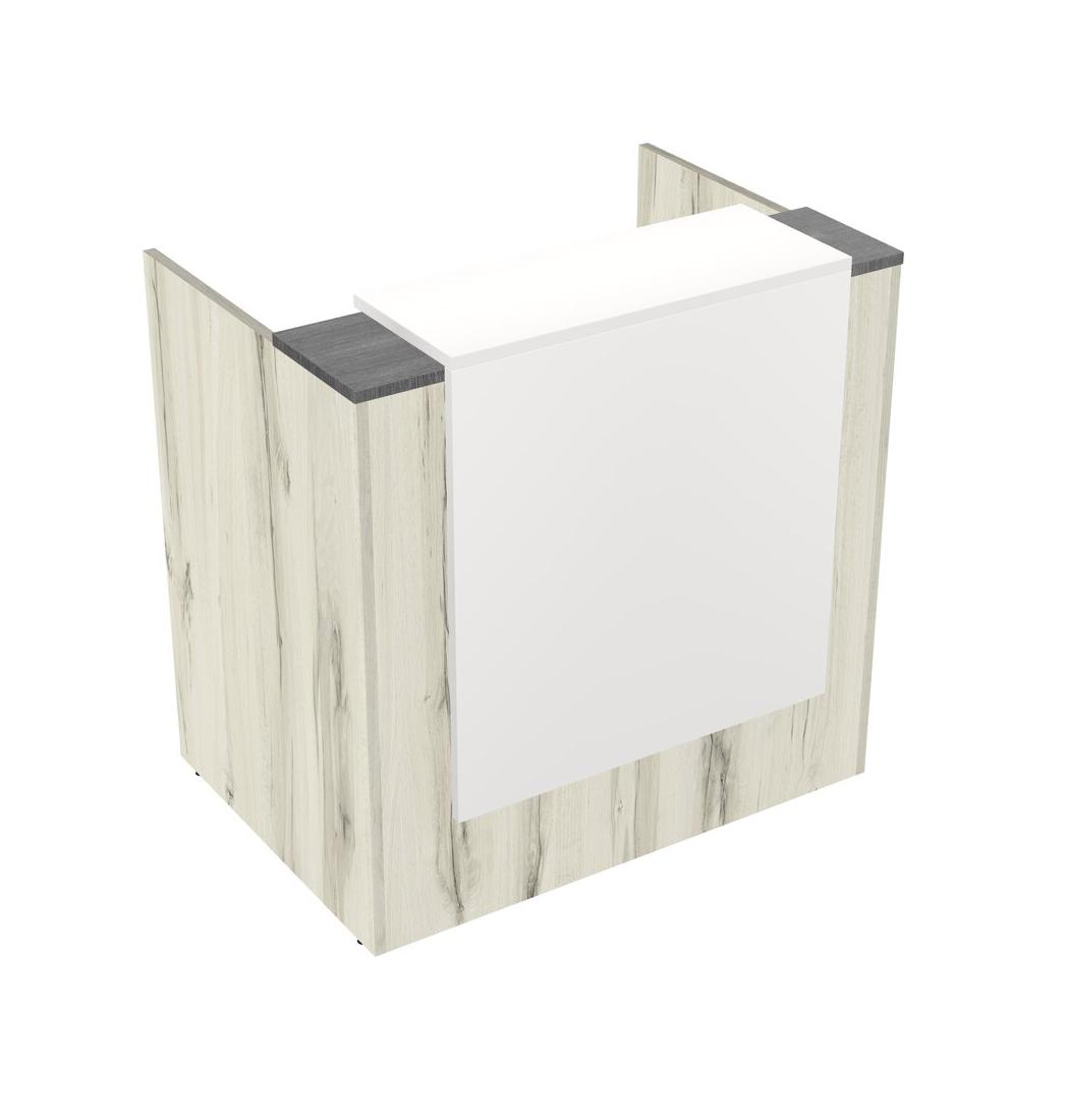 Grey Modular Reception Desk With Floating Counter And Wooden Mobile Drawers