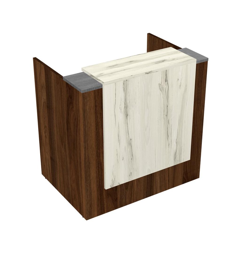 Grey Modular Reception Desk With Floating Counter And Wooden Mobile Drawers