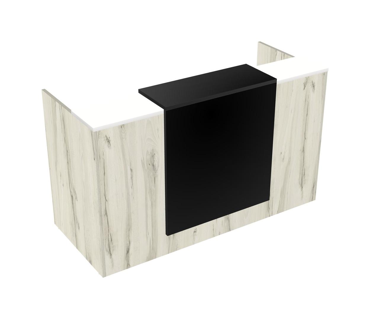 White Modular Reception Desk With Floating Counter And Wooden Mobile Drawers